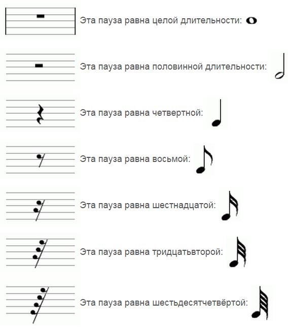 Давайте посмотрим обозначения пауз: